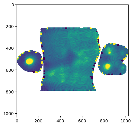 plt.imshow(distortion_interpolated, vmin=0, vmax=0.75*1e7)/home/nikolas/Documents/UCSB/streichan/numerics/code/python_code/jupyter_notebooks/blender-tissue-cartography/blender_tissue_cartography/interpolation.py:217: RuntimeWarning: UV map has self-intersections, 33 flipped triangles. Try use_fallback=True?