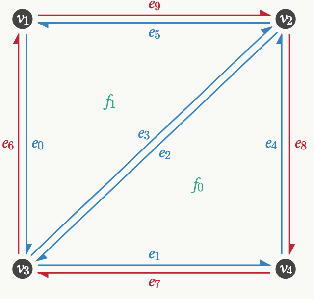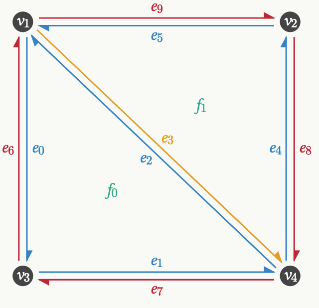 # inverse consistency check: split then collapse the inserted edgee_join = hemesh.n_hes+1# error for 2*hemesh.n_vertices+1 ?hemesh_back, back_map = collapse_edge(hemesh_split, e_join)F0 = msh._canonical_faces_np(hemesh.faces)F_back = msh._canonical_faces_np(hemesh_back.faces)print("back to original counts?", hemesh_back.n_items == hemesh.n_items)print("back to original faces?", np.array_equal(F0, F_back))print("Valid HE mesh after collapse:", msh.test_mesh_validity(hemesh_back))