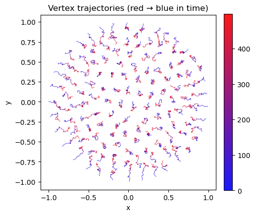 ax.set_title("Vertex trajectories (red → blue in time)")